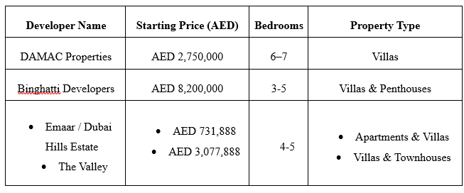 Let’s have a sneak peak look to some of the top developers in Dubai and what are they offering in Villas category: